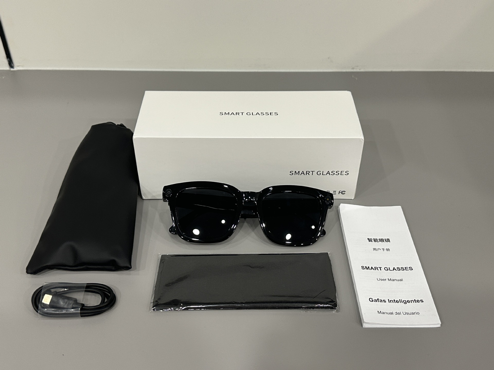 Package list :Smart glasses*1 glasses case*1 glasses cloth*1 data cable*1 instruction manual*1